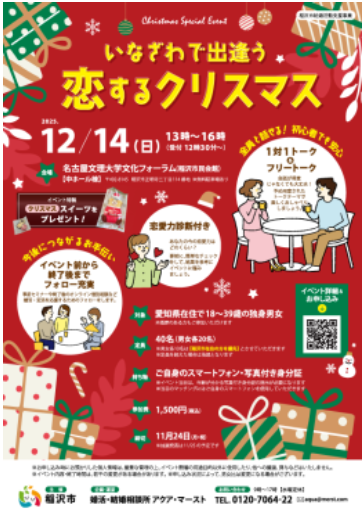 【愛知県/岐阜県/三重県に在住または在勤で、25歳から39歳の方限定】令和7年度は津島市最後のイベント!恋がはじまるクリスマスin津島